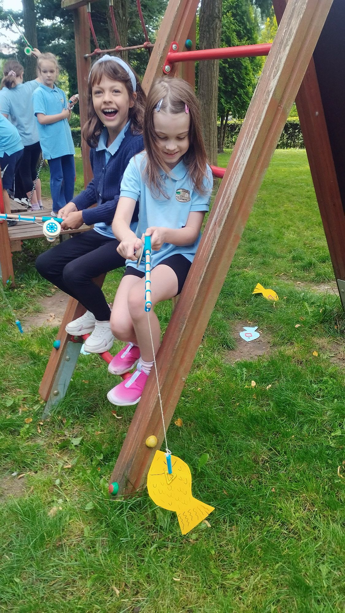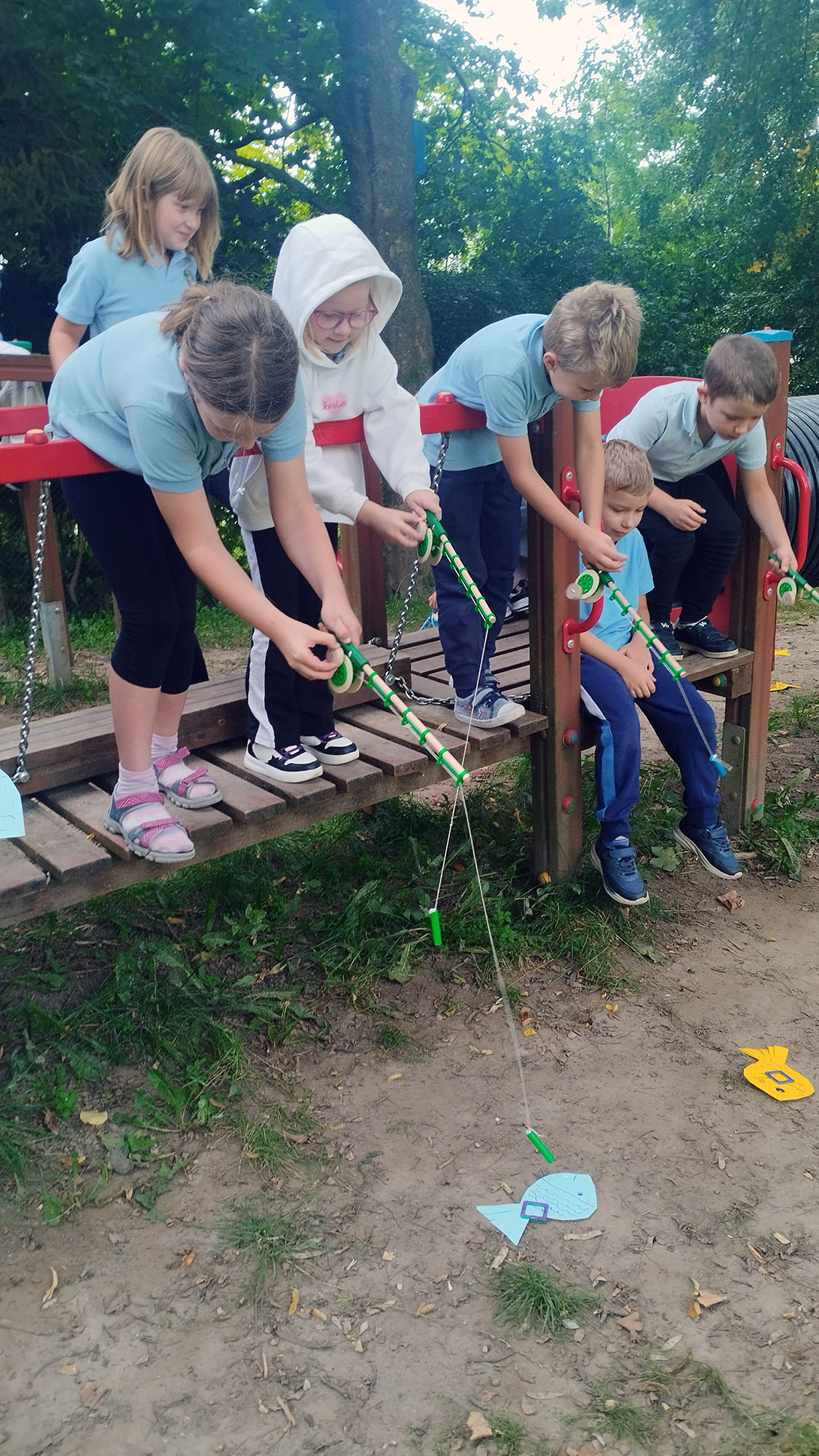 Dziś szkolne podwórko zamieniło się w wesołe łowisko. Uczniowie klasy II łowili kolorowe rybki, w których ukryte były zadania do wykonania.