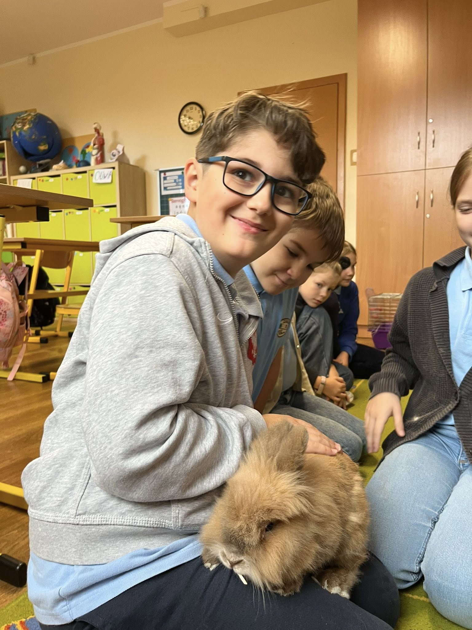 Uczniowie klasy 3 mieli niezwykłą okazję uczestniczyć w zajęciach przyrodniczo-edukacyjnych z udziałem… królika o imieniu Nika!