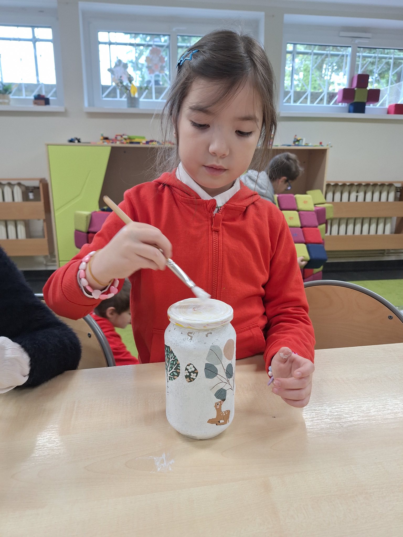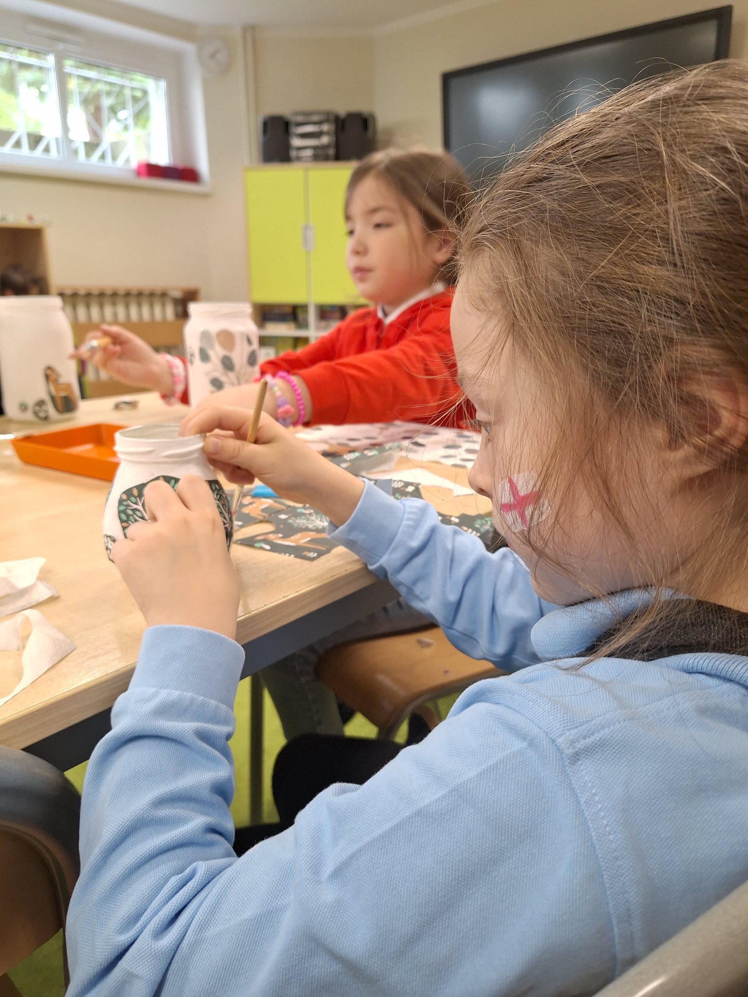 Każdy lampion to małe dzieło sztuki – pełne ciepłych barw, liści i jesiennego uroku. Dzieci z ogromnym zaangażowaniem i kreatywnością ozdabiały swoje słoiczki, wkładając w nie mnóstwo serca.