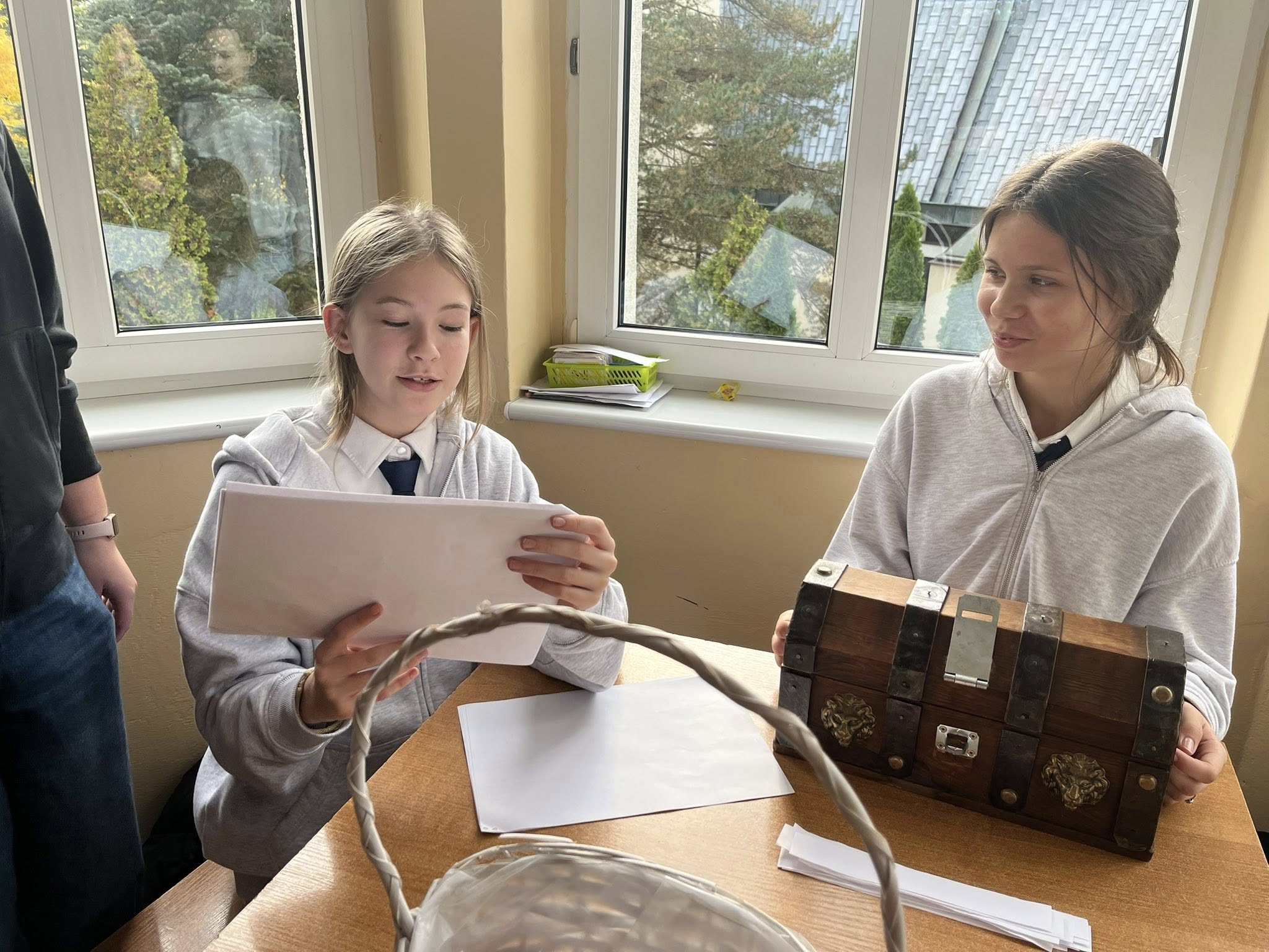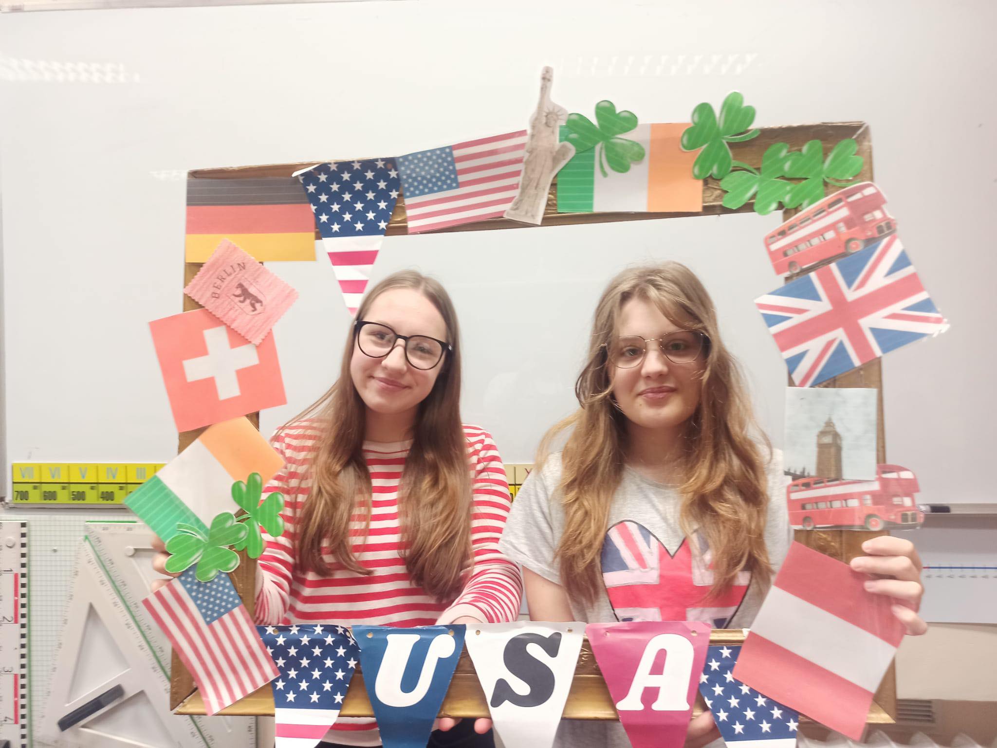 Wyjątkową atrakcją była fotobudka, w której uczniowie mogli uwiecznić swoje przebrania i wspólne chwile. Dużym zainteresowaniem cieszył się także quiz wiedzy o krajach niemieckiego i angielskiego obszaru językowego– emocji i śmiechu zdecydowanie nie brakowało!