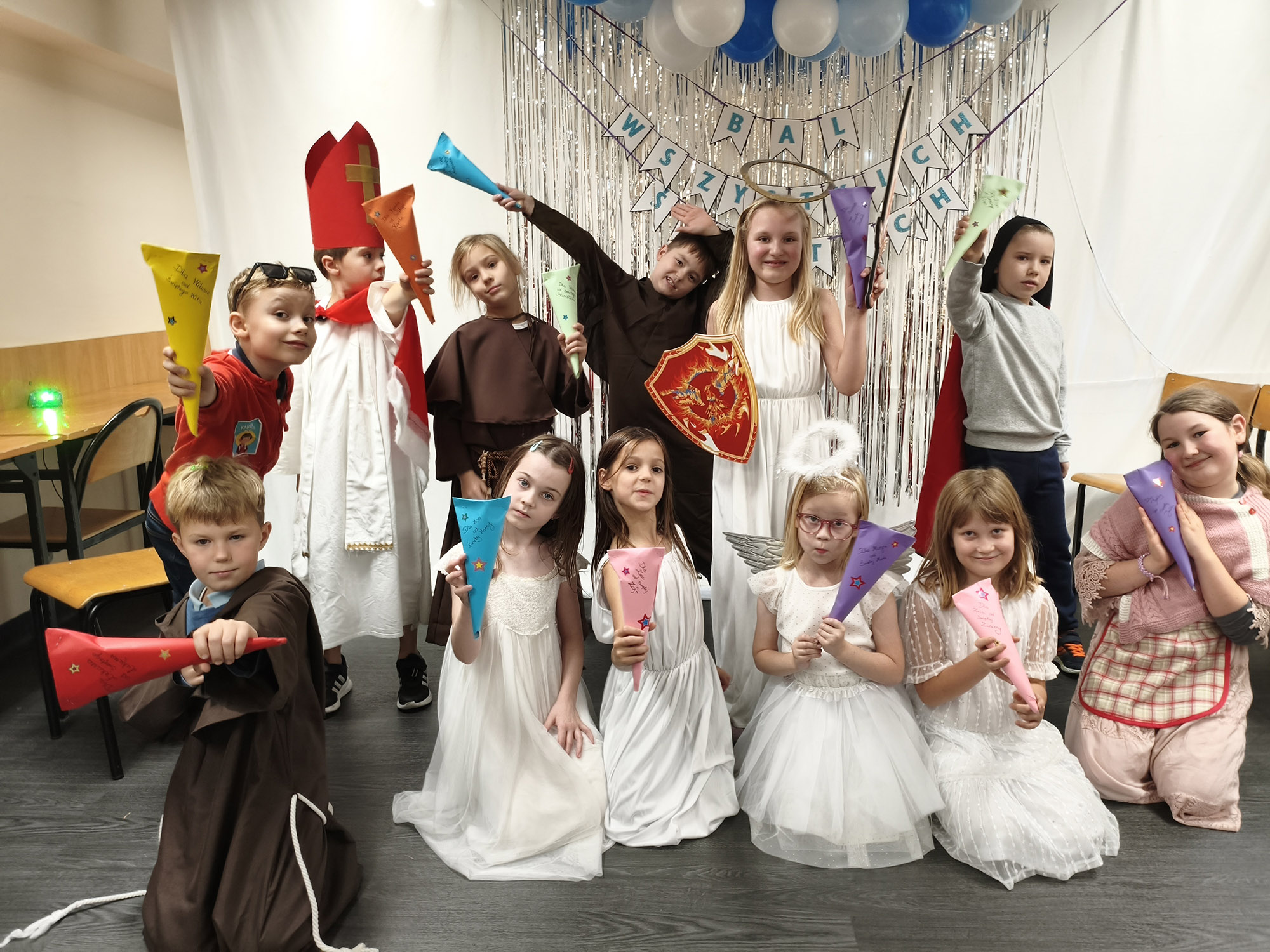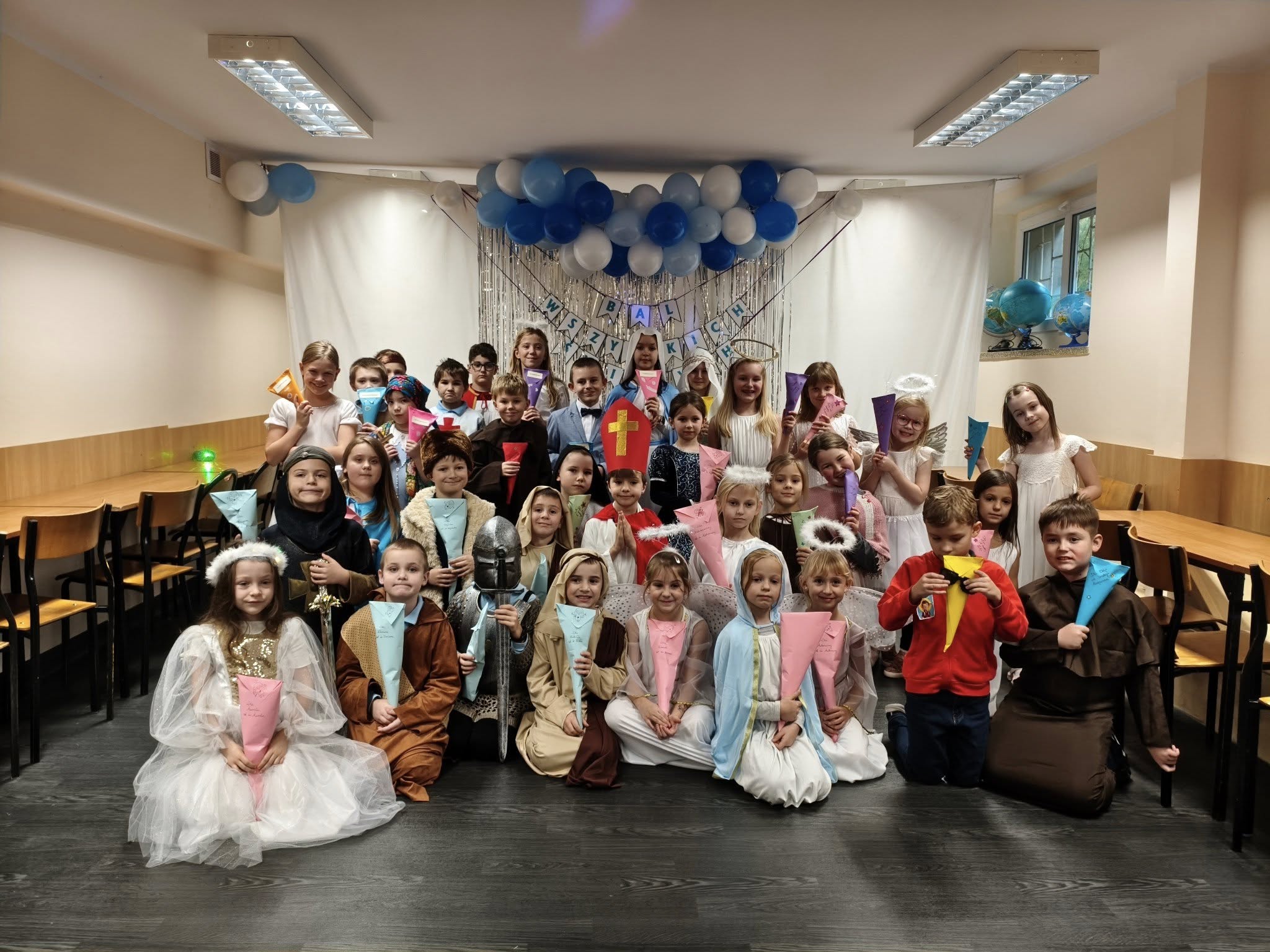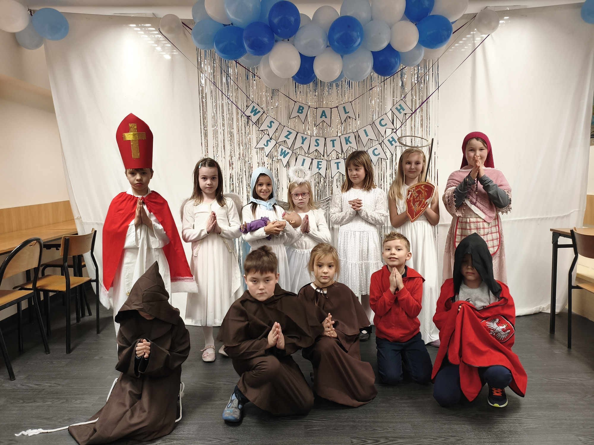 Dzieci przebrały się za swoich ulubionych świętych i aniołów. Wśród nich można było rozpoznać m.in. św. Franciszka, św. Mikołaja, bł. Carla Acutisa, św. Hiacyntę, św. Zuzannę oraz wielu innych. Każdy z uczniów z dumą prezentował swój strój i chętnie opowiadał o wybranym świętym.