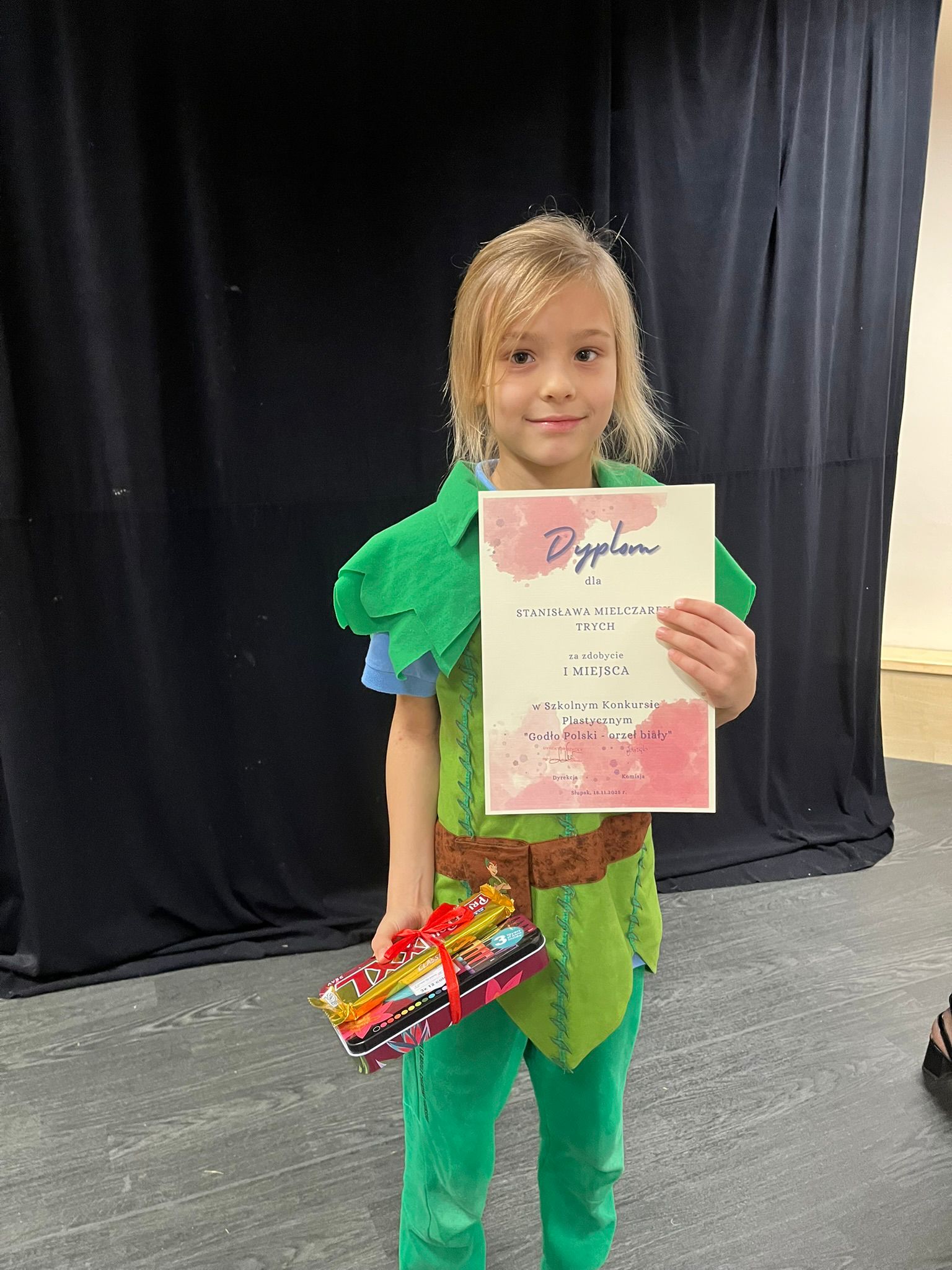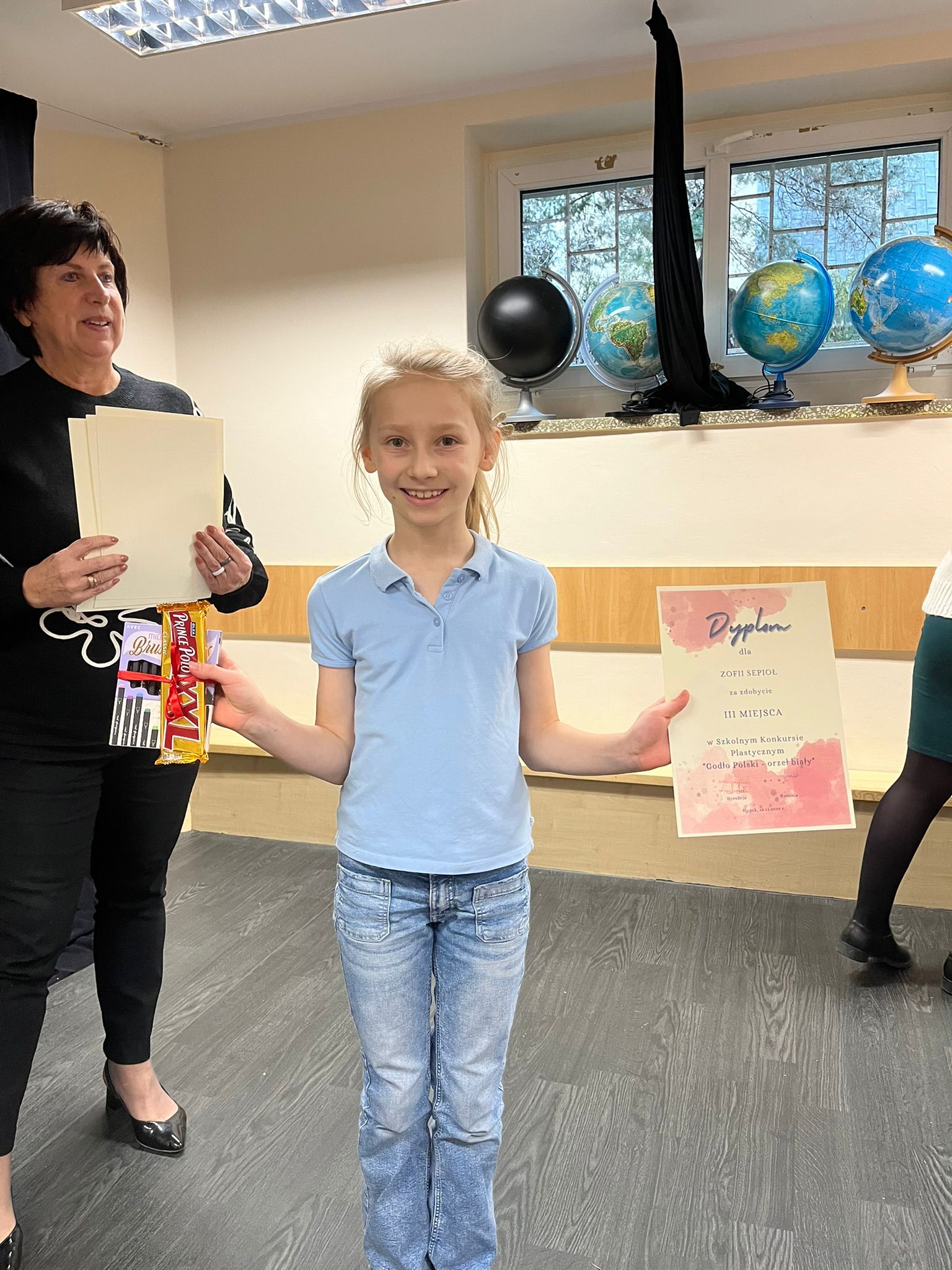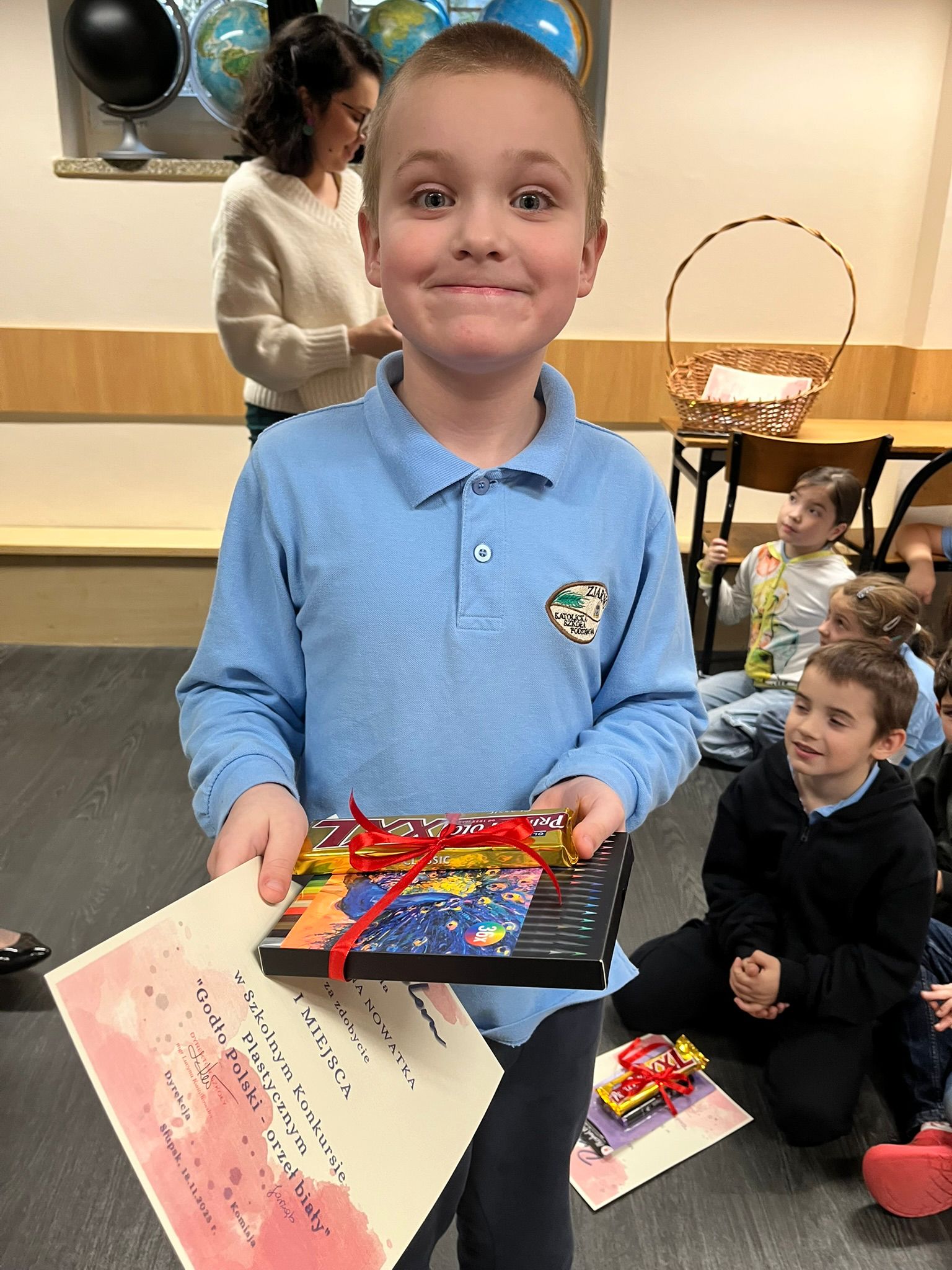 Do rywalizacji przystąpiło dziewięcioro uczniów klas I–III, którzy przygotowali piękne i pomysłowe prace przedstawiające polskie godło.