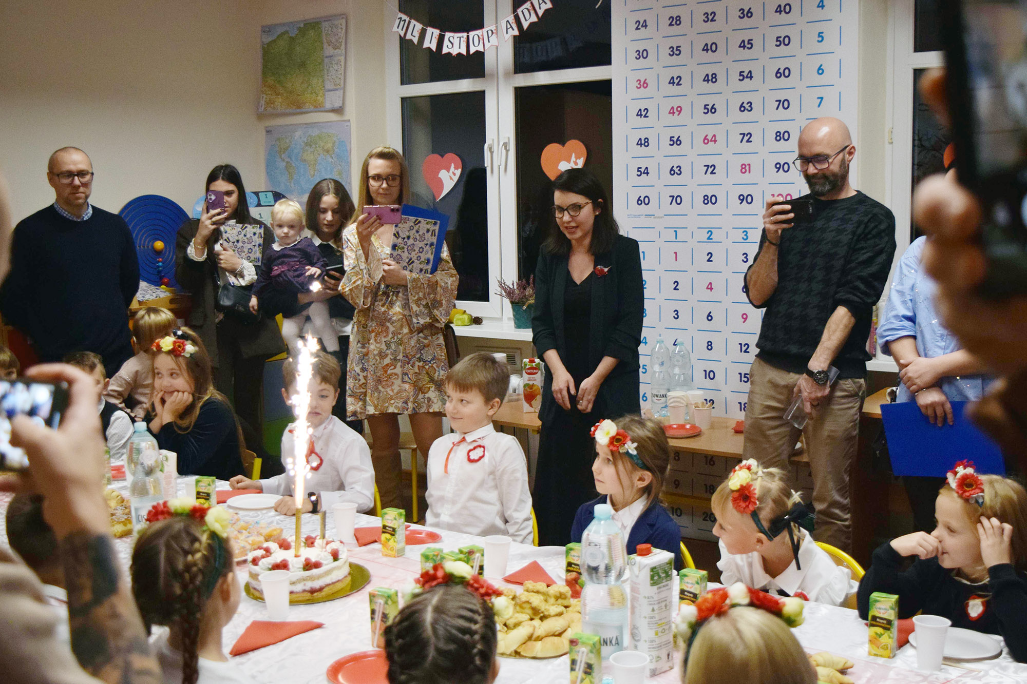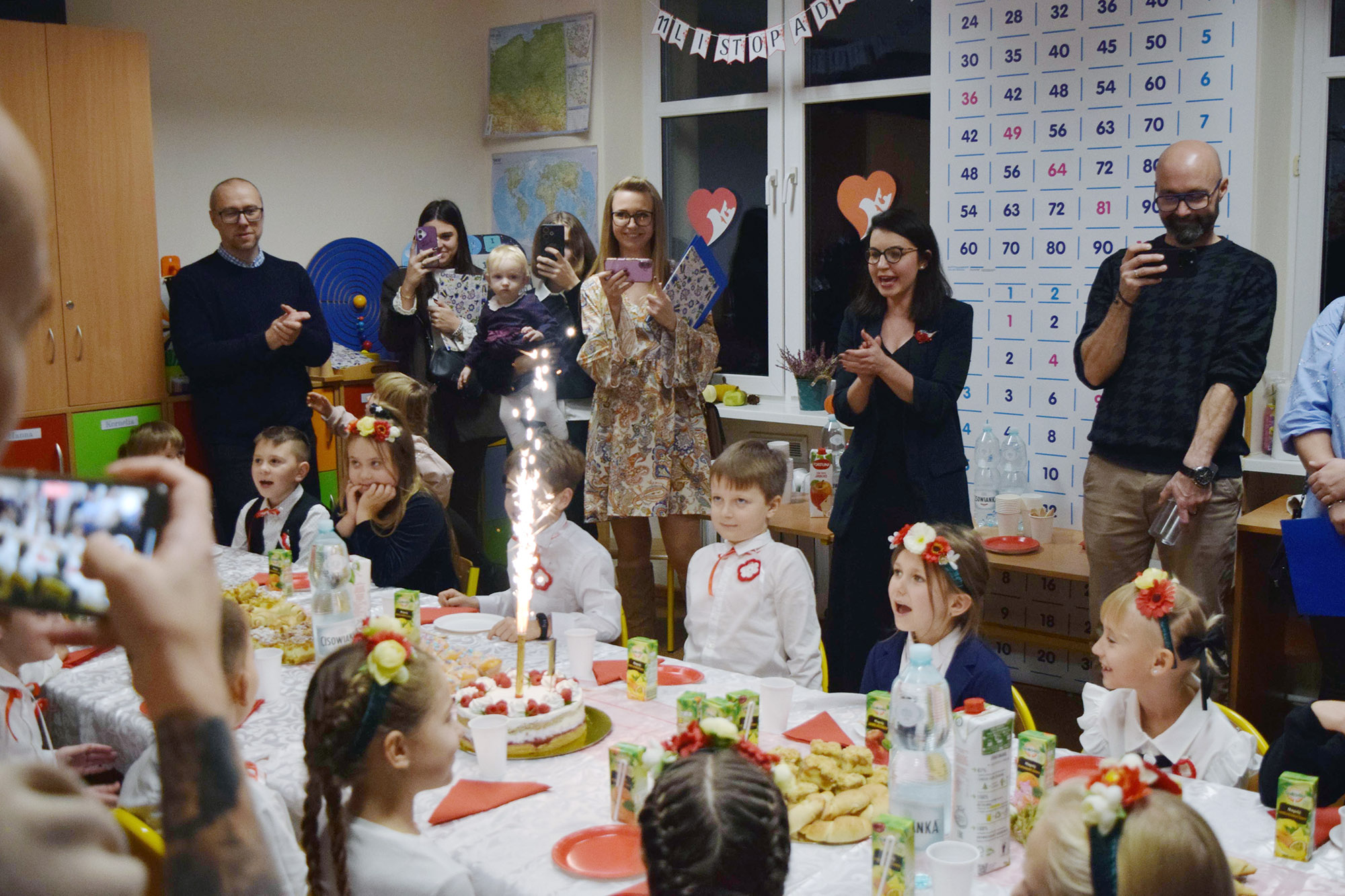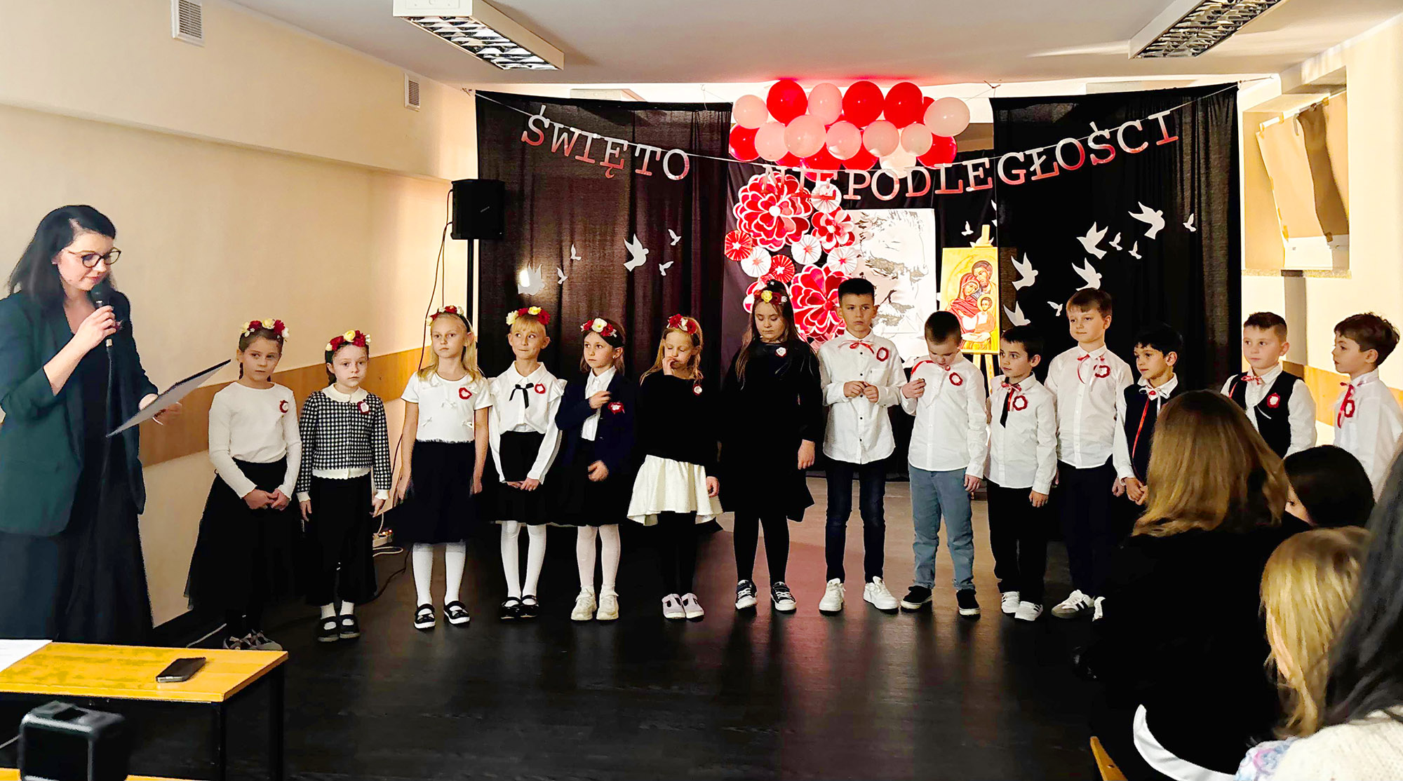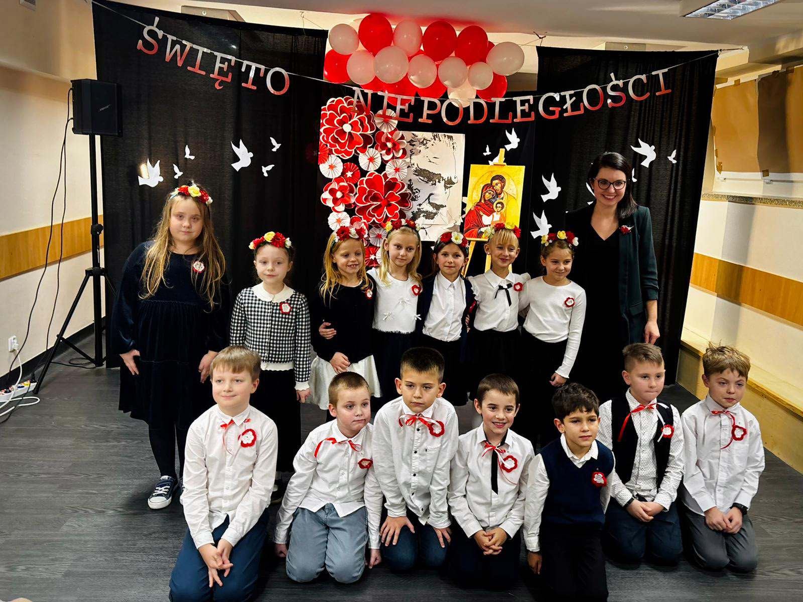 W listopadowy wieczór odbyło się wyjątkowe pasowanie na ucznia klasy pierwszej, które zostało połączone z wieczornicą patriotyczną. Dzieci, poprzez taniec i śpiew, upamiętniły tych, którzy walczyli o naszą niepodległość, składając hołd bohaterom naszej historii.