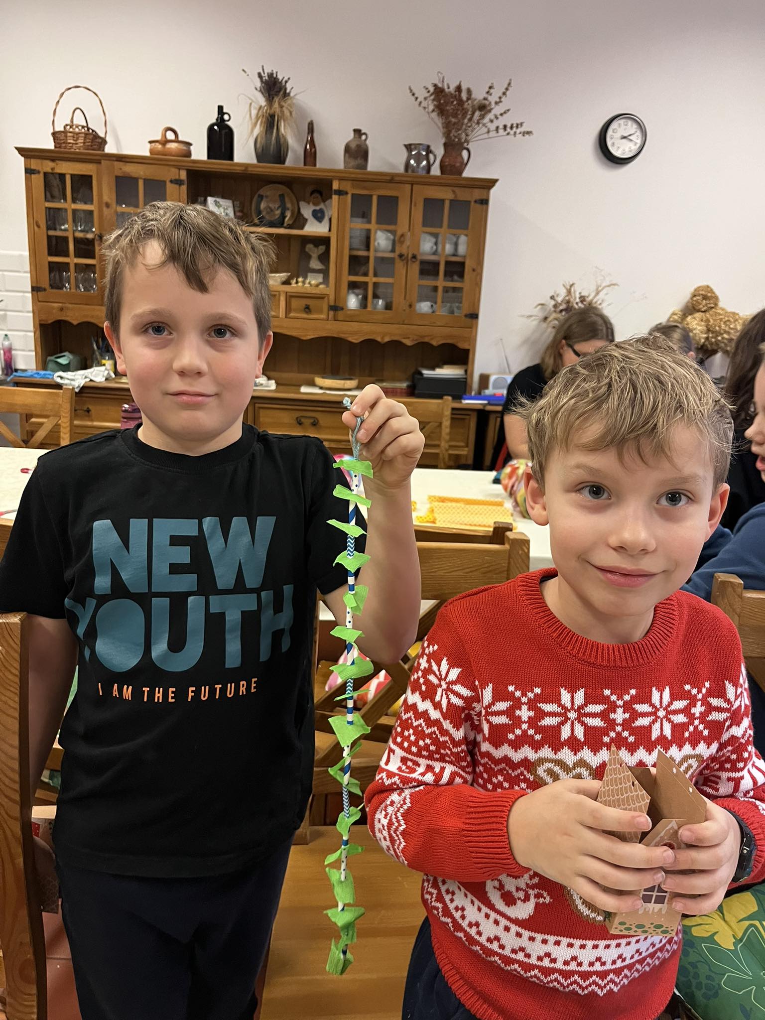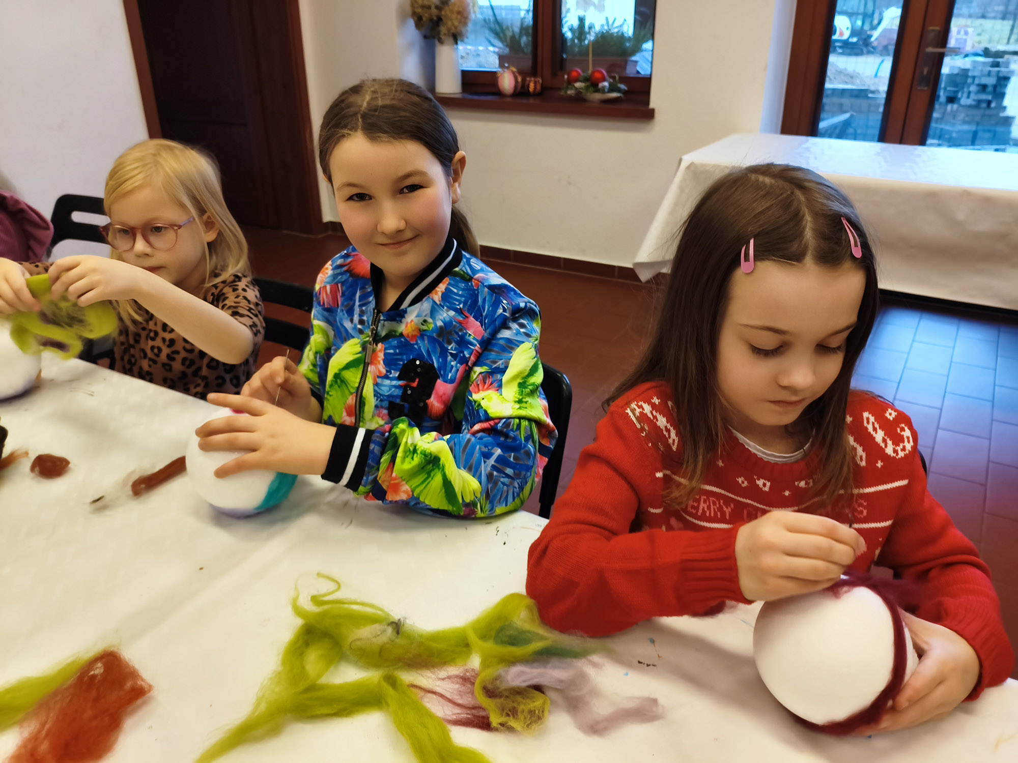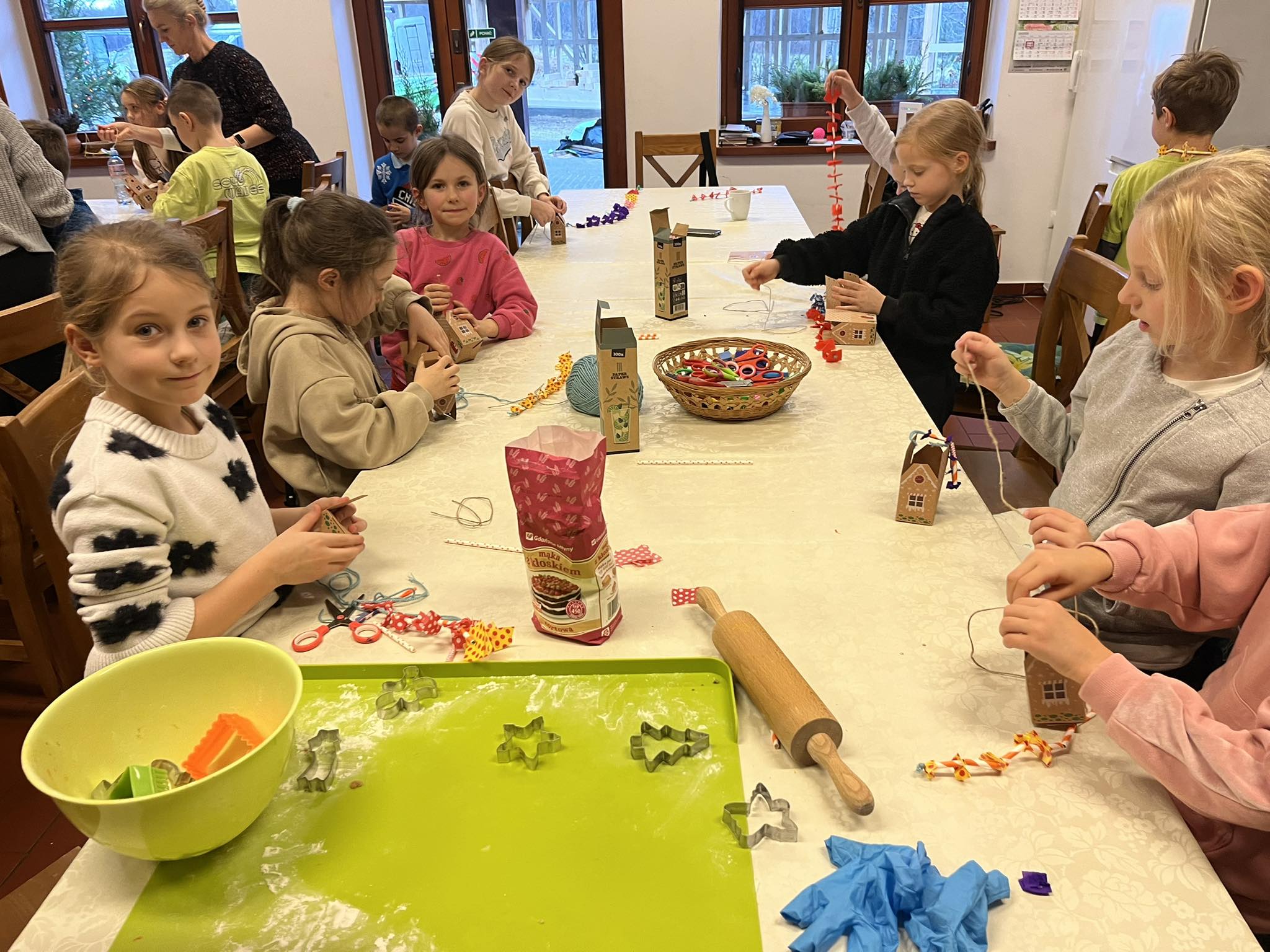 Następnie grupa udała się do Zagrody Step-Rekowskich w Płotowie, gdzie wzięła udział w kreatywnych warsztatach. Podczas zajęć uczniowie samodzielnie wykonywali filcowe bombki, piekli pierniczki oraz tworzyli tradycyjne łańcuchy choinkowe. Warsztaty dostarczyły dzieciom wiele radości i pozwoliły na rozwijanie zdolności manualnych oraz współpracy w grupie.