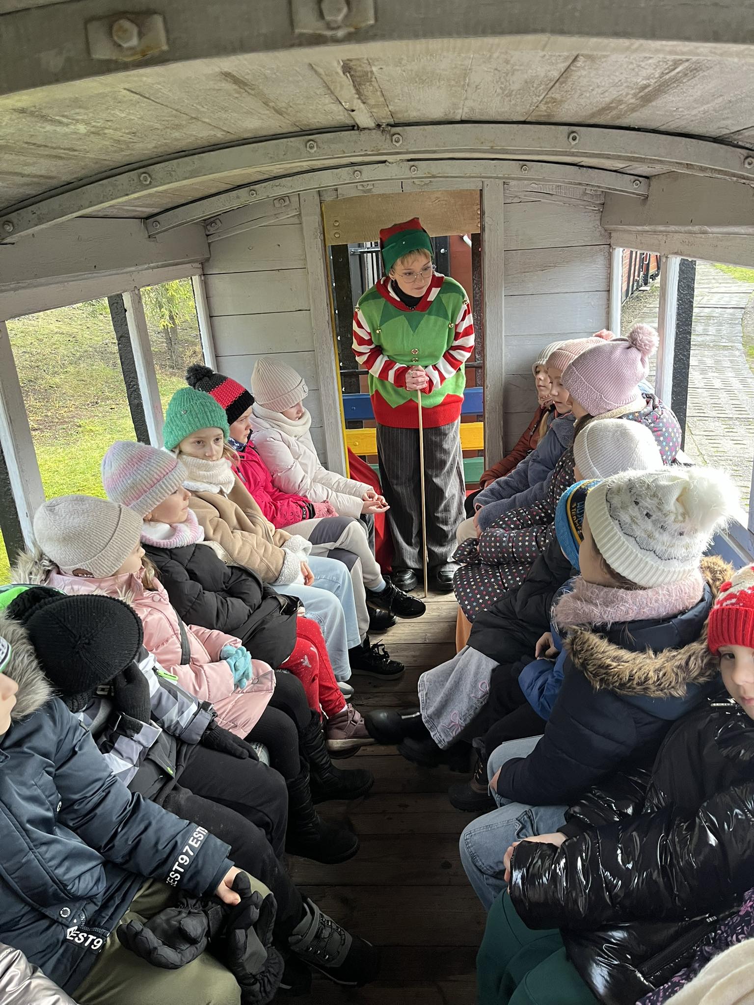 Pierwsza część wyjazdu poświęcona była poznawaniu historii kolejnictwa. Dzieci miały możliwość obejrzeć liczne eksponaty związane z transportem kolejowym, a szczególnym zainteresowaniem cieszyła się imponująca lokomotywa. Uczniowie zwiedzili także parowozownię oraz uczestniczyli w krótkich zajęciach dotyczących zasad savoir-vivre obowiązujących w pociągu.