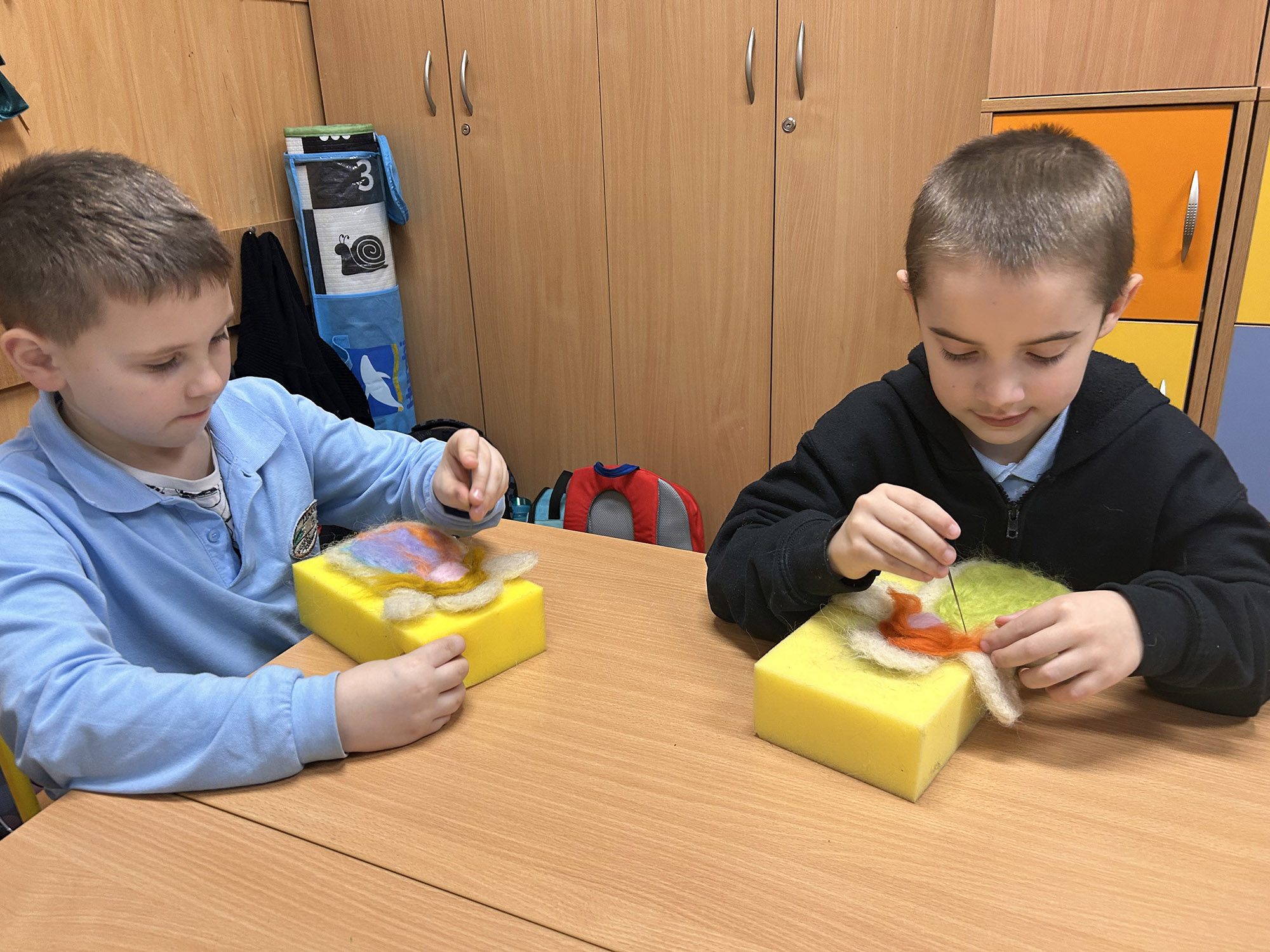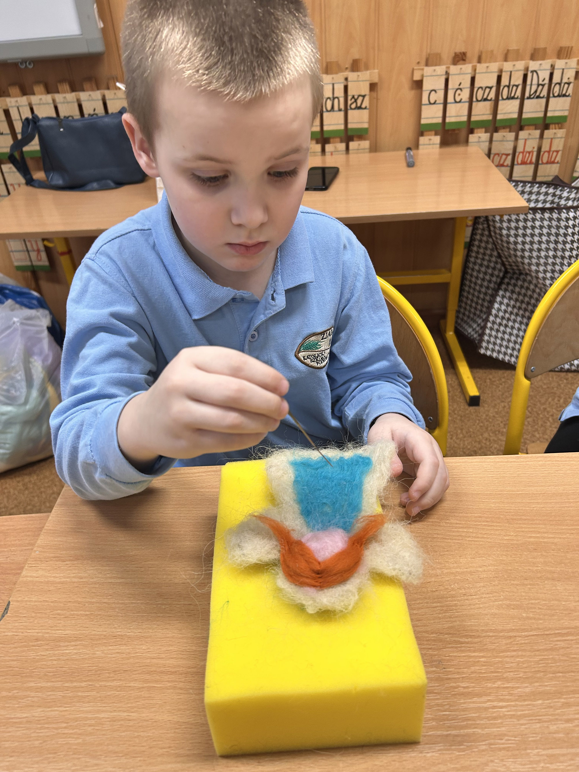 Podczas zajęć uczniowie mieli okazję poznać podstawy techniki filcowania oraz własnoręcznie wykonać piękne, niepowtarzalne anioły. Warsztaty sprawiły dzieciom wiele radości, rozwijały ich kreatywność, zdolności manualne oraz cierpliwość, a jednocześnie wprowadziły wszystkich w świąteczny, pełen ciepła nastrój.