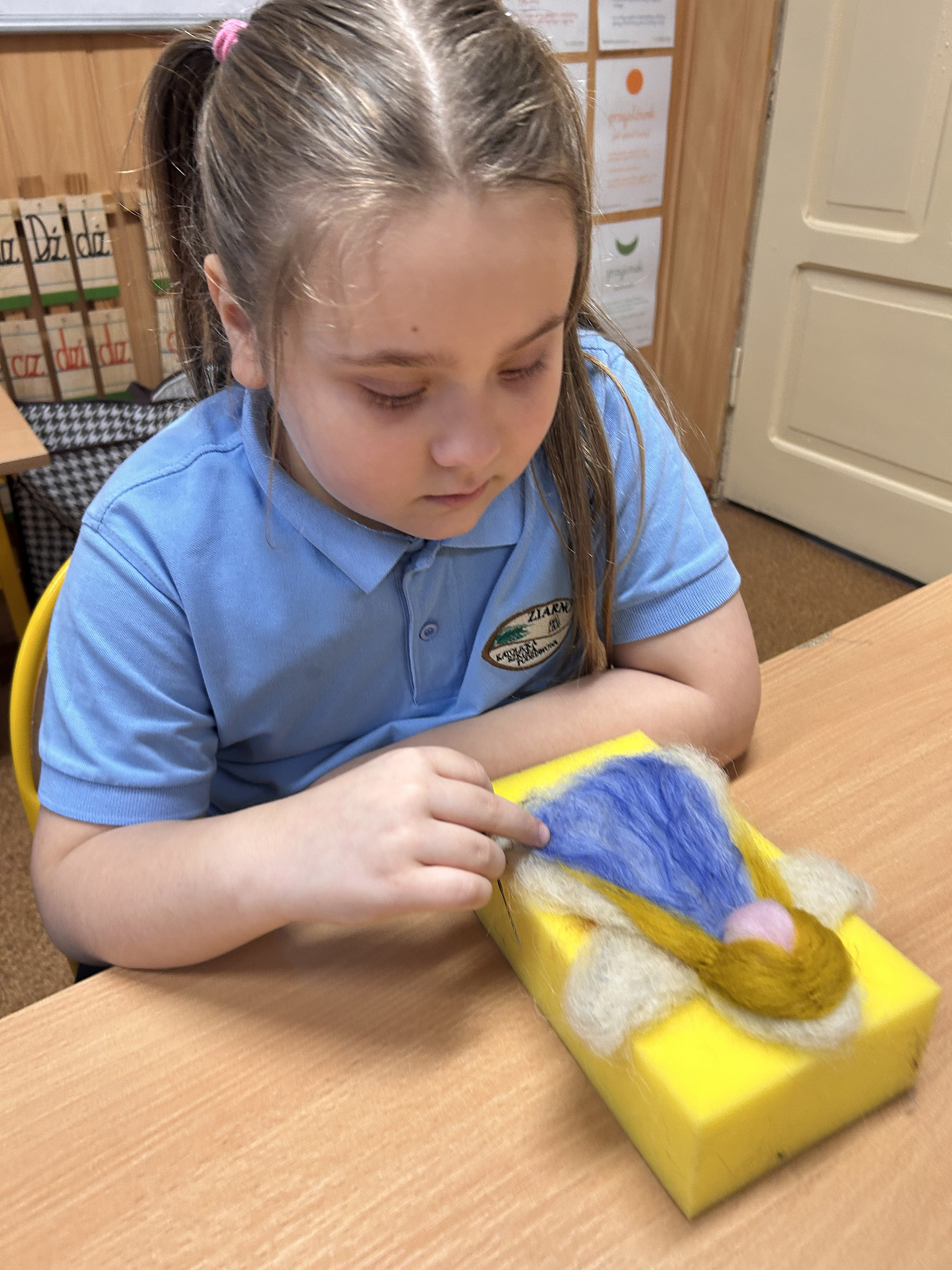 W klasie pierwszej, w ramach adwentowej niespodzianki, odbyły się warsztaty filcowania na sucho aniołów, prowadzone pod okiem pani Tatiany Słojki – rękodzielniczki.